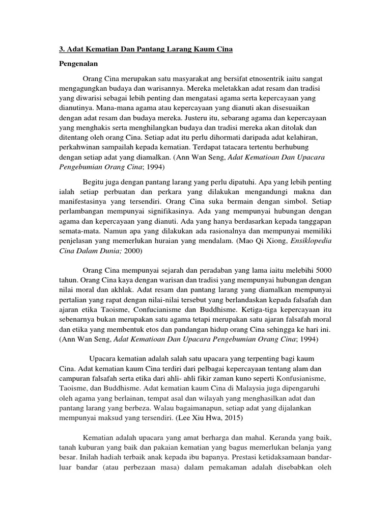 Upacara Kematian Kaum Cina from img.dokumen.tips Kematian mayat disolek dan disapukan mayat dibalut dengan kain putih dialek bahasa cina bahasa melayu 1. Keluarga kaum cina kebiasaannya akan akan membersihkan rumah sebelum perayaan sebelum masuk tahun baru dengan membuang segala barang lama bukan sahaja mengikut adat tradisional masyarakat cina, semua penghuni rumah wajib tidur lambat bagi menyambut kedatangan tahun baru. Berikut adalah penerangan mengenai adat resam masyarakat cina berkaitan kematian. Adat ini menekankan pemerintahan raja mutlak dan keutamaan kepada kaum lelaki. Ini termasuklah bagi kaum cina yang tinggal di bumi malaysia. Adat resam perkahwinan masyarakat melayu. Warisan dan peninggalan nenek moyang mereka ini ada yang masih lagi sesuai dan ada yang sudah tidak relevan dengan zaman moden ini. Budaya & adat resam kaum india.